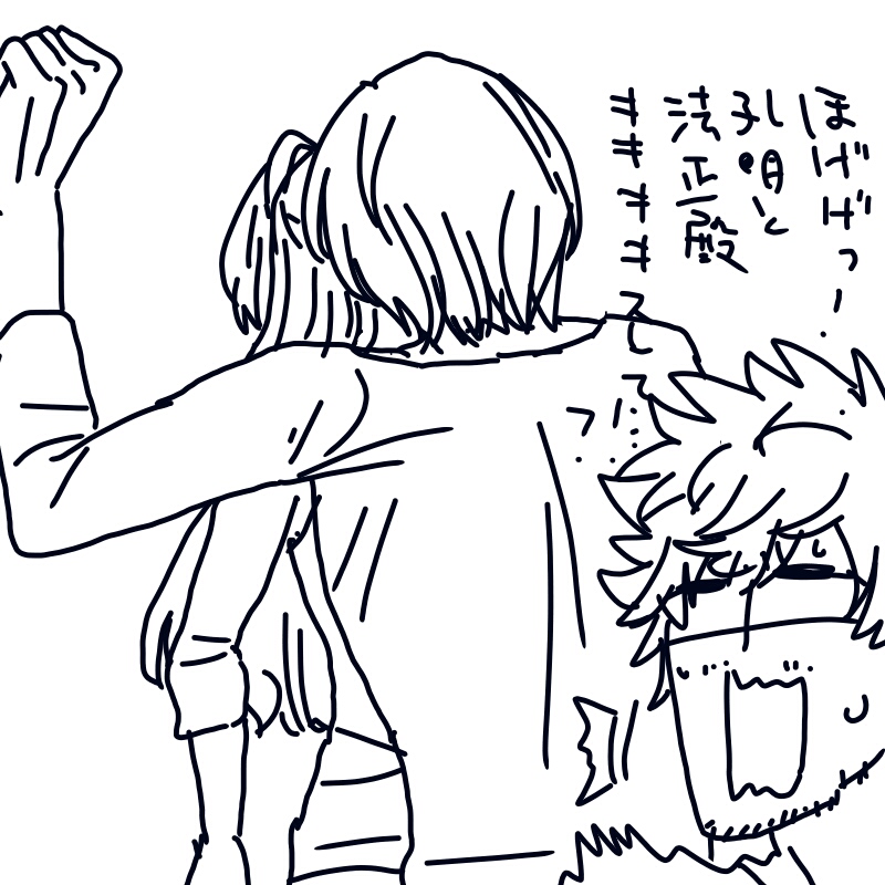というわけで添付です。PC をつけたものの、らくがきする前に色々やったら筆圧感知がゼロになってしまってまして(調子の悪いPC)、再起動させようかとも思ったのですが、まあこれはこれでサインペンっぽくて楽しいかな、ということでそのまま続行してみました↓