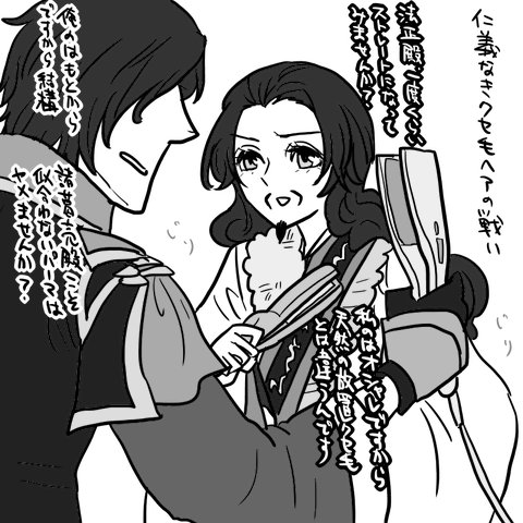 本当はもうちょっと違うのを描こうと思っていたのですが、孔明がかわいく描けたのでこれは使いたい!というわけでどうにかした結果、こうなりました。ちゃんとしたじょしょこめも描くの久しぶりですね。